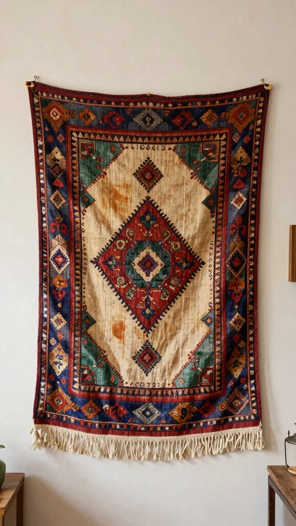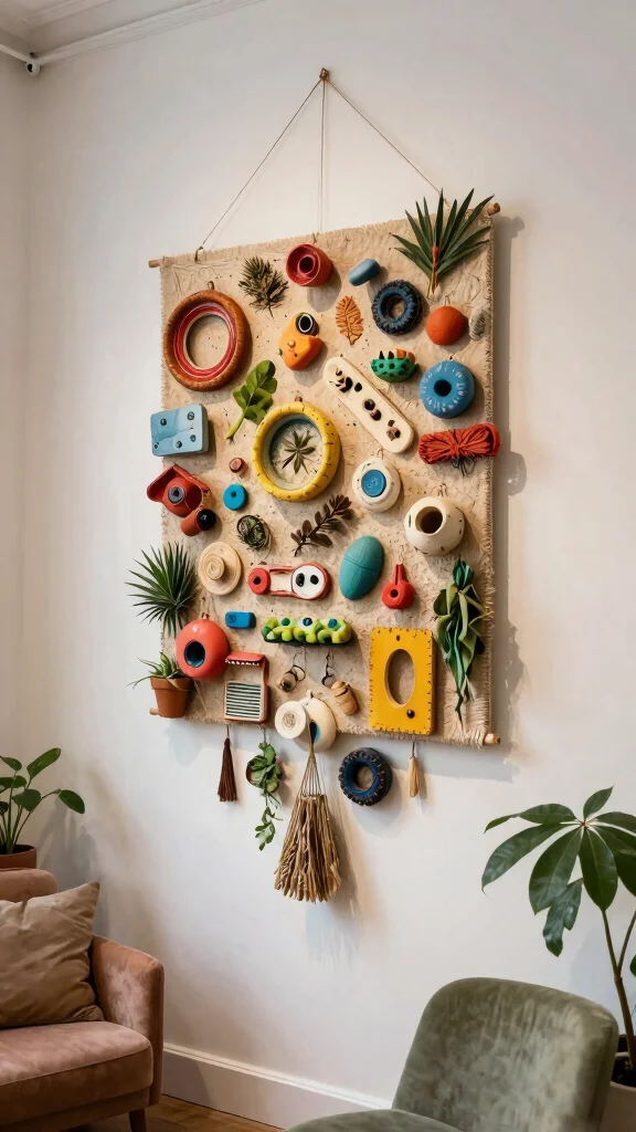 3. Pair textile art with wooden or metal accents for a cohesive look.