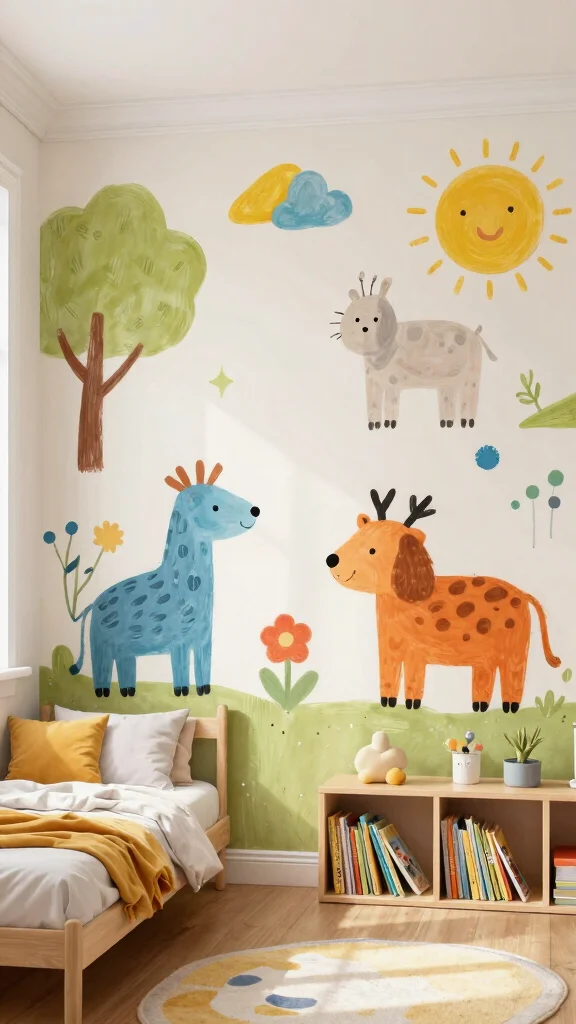 This art transforms the room into a magical environment where your child’s imagination can flourish. Involving your little one in the creation process adds a personal touch, making it even more special.