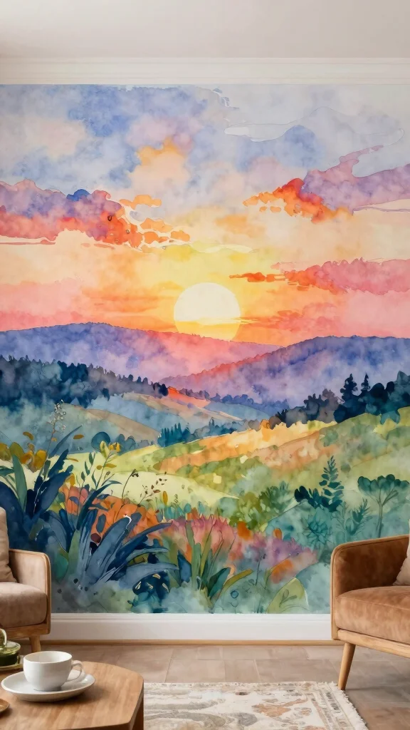 The fluid nature of watercolors allows for creative expression, making it an ideal choice for those looking to add a personal touch to their home. Whether it’s a small accent wall or an expansive feature, watercolor murals provide endless possibilities for creativity.