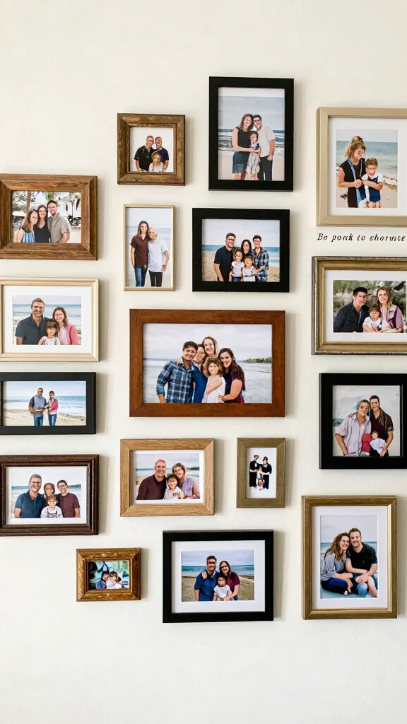 Mix prints of family milestones, candid moments, and artistic interpretations of life experiences. Frame these pieces in various styles to celebrate each memory’s uniqueness while ensuring a sense of unity across the wall.