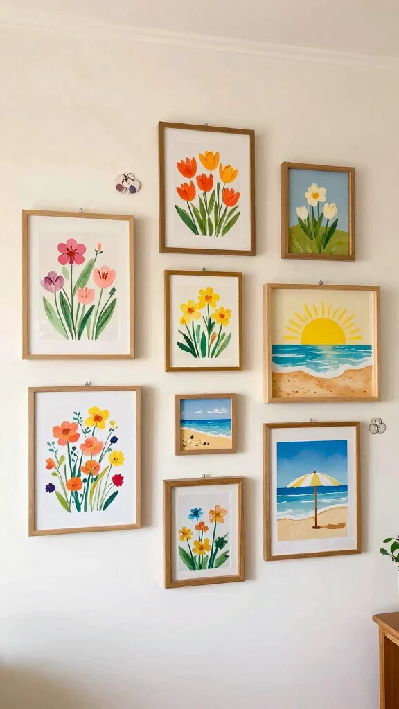 For spring, consider floral prints, while summer could highlight beach scenes. Autumn may bring in warm-toned landscapes, and winter can feature cozy, inviting artworks.