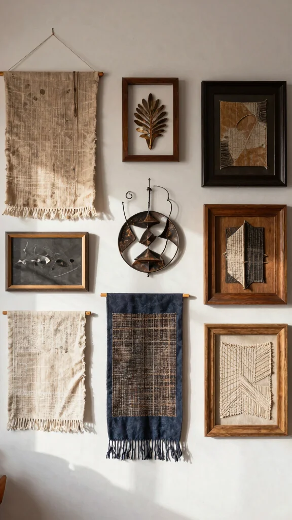 Choose pieces that complement one another, such as fabric wall hangings paired with metal sculptures or wooden frames surrounding mixed media artwork. The varied textures can make even the smallest space feel dynamic and engaging.