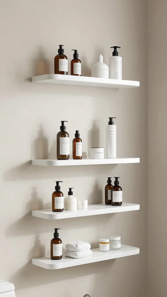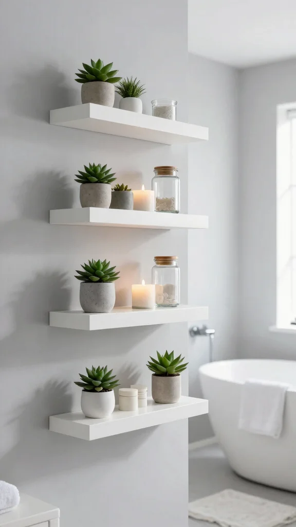 Floating shelves offer a sleek and modern way to enhance your bathroom’s openness while providing practical storage solutions.