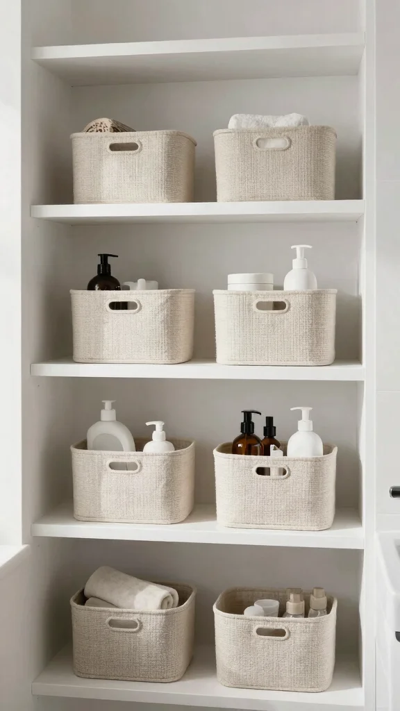 Minimalist basket storage helps your bathroom stay chic, practical, and organized.