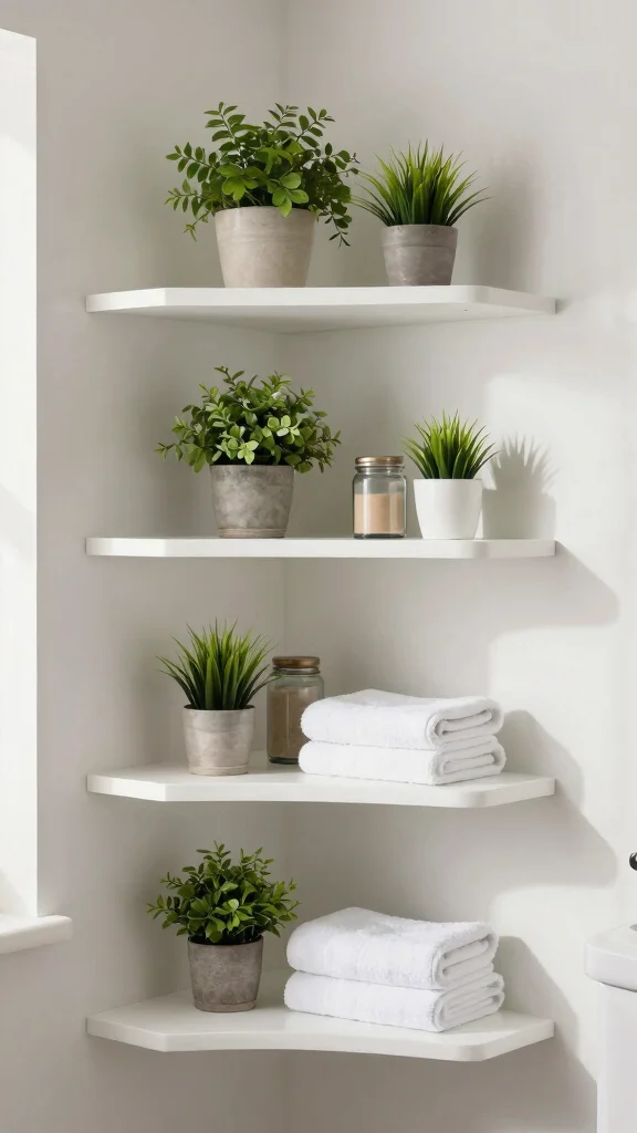 Corner shelves are a smart solution for maximizing storage in tight bathroom spaces.