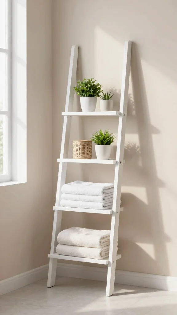 Ladder shelves can elevate your bathroom’s design while ensuring it remains functional and organized.