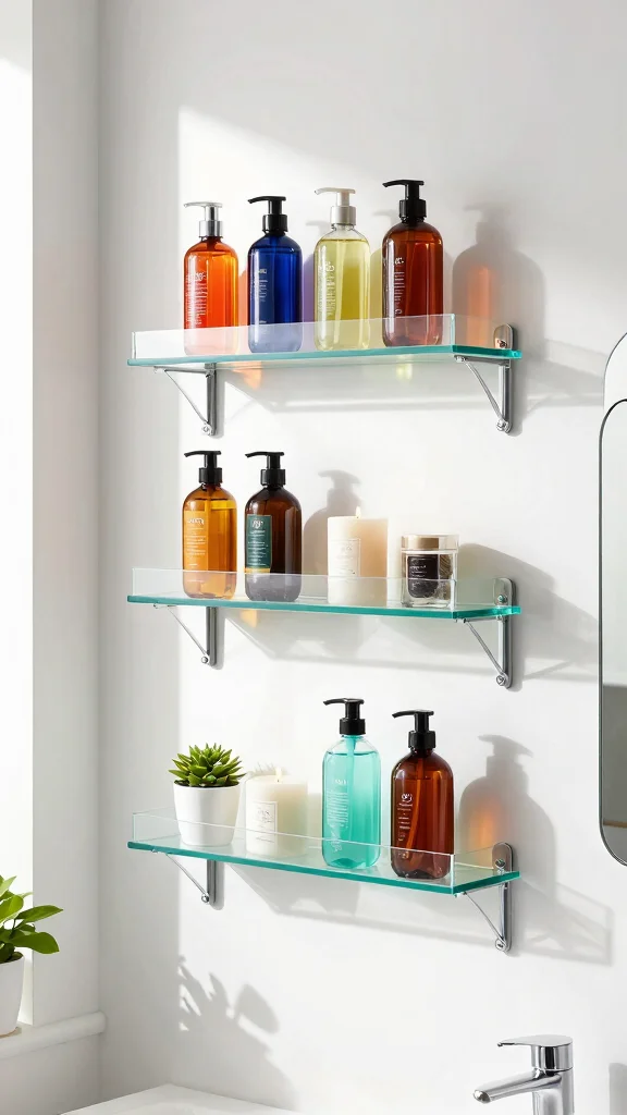 This modern choice allows for the display of colorful shampoos, perfumes, or decorative candles, adding style without overwhelming the space.