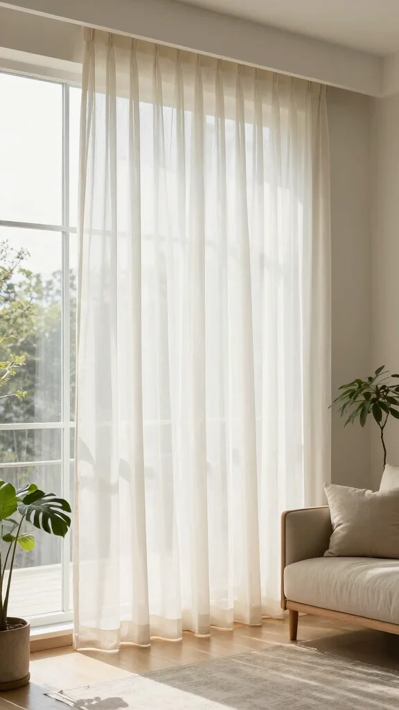 To implement this look, choose floor-length sheers that draw the eye upward, creating a sense of height. For added versatility, combine sheer curtains with blackout shades to control privacy and light levels. Using wall-mounted tracks or clips makes opening and closing easy, adding a stylish flair to your decor.