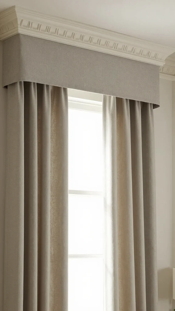 Cornices offer a beautiful way to finish your window treatments with a refined touch. These decorative boxes conceal the tops of your curtains or blinds, adding sophistication while maintaining a minimalist appearance. They can be crafted from wood or fabric to align with your chosen style.