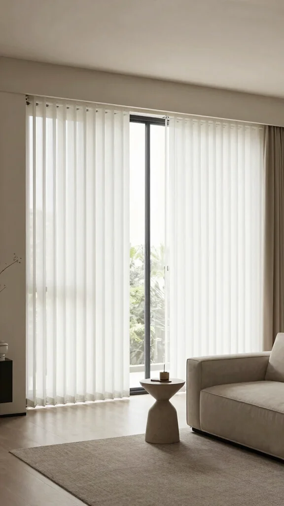 Vertical blinds can transform your larger windows or sliding doors into chic design elements. These versatile treatments can be mounted inside the frame to create a sleek, modern appearance while providing flexibility in light control.