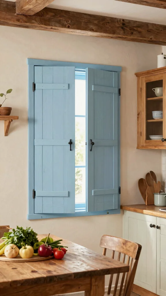 For a charming look, consider painting your shutters in soft pastel shades or leaving them in their natural state for authenticity. Pairing them with neutral decor creates a beautiful contrast that enhances the rustic appeal of your cooking space.