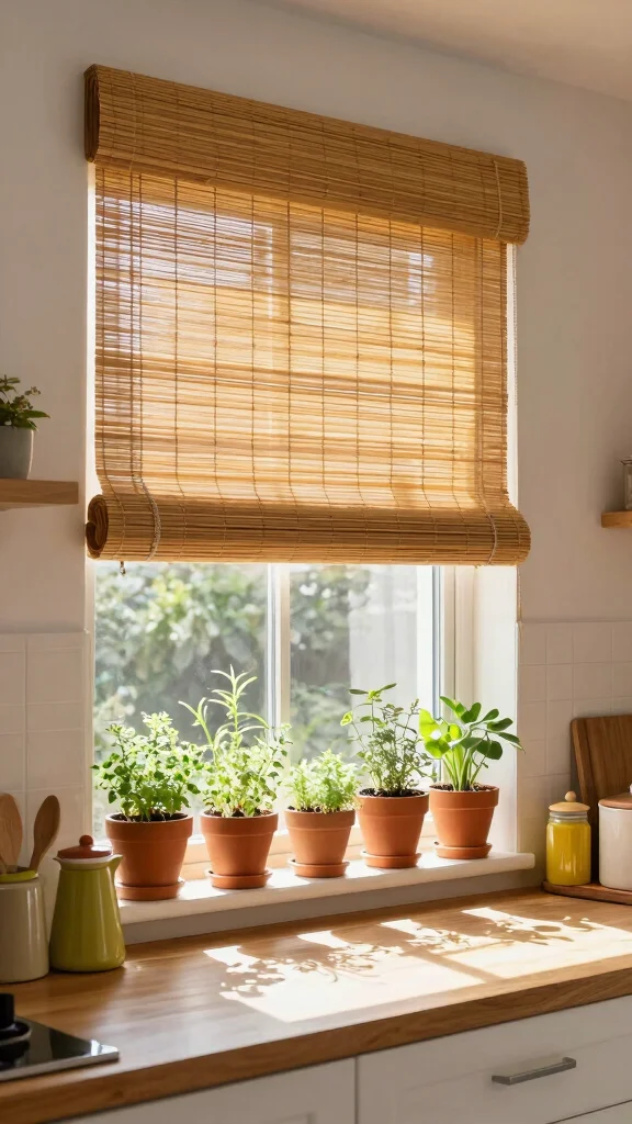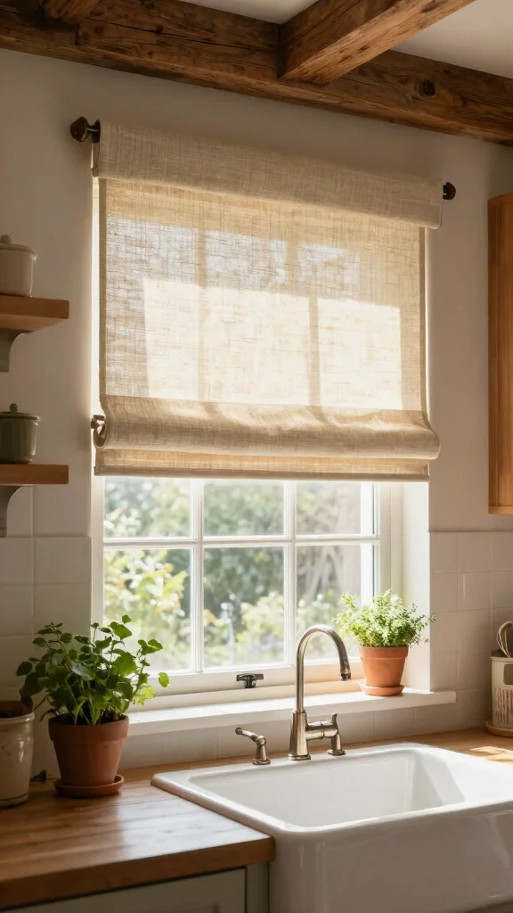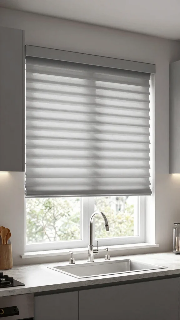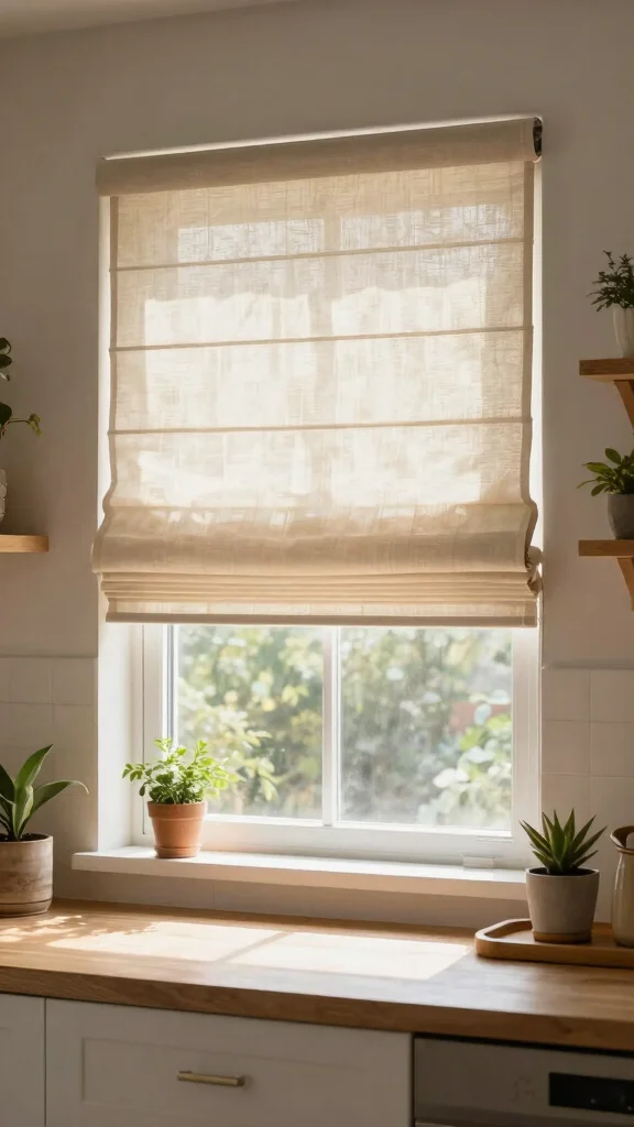 These shades can be easily adjusted to control light, making them a versatile option for any kitchen. Pair them with neutral or light-colored decor elements to maintain balance in the space.