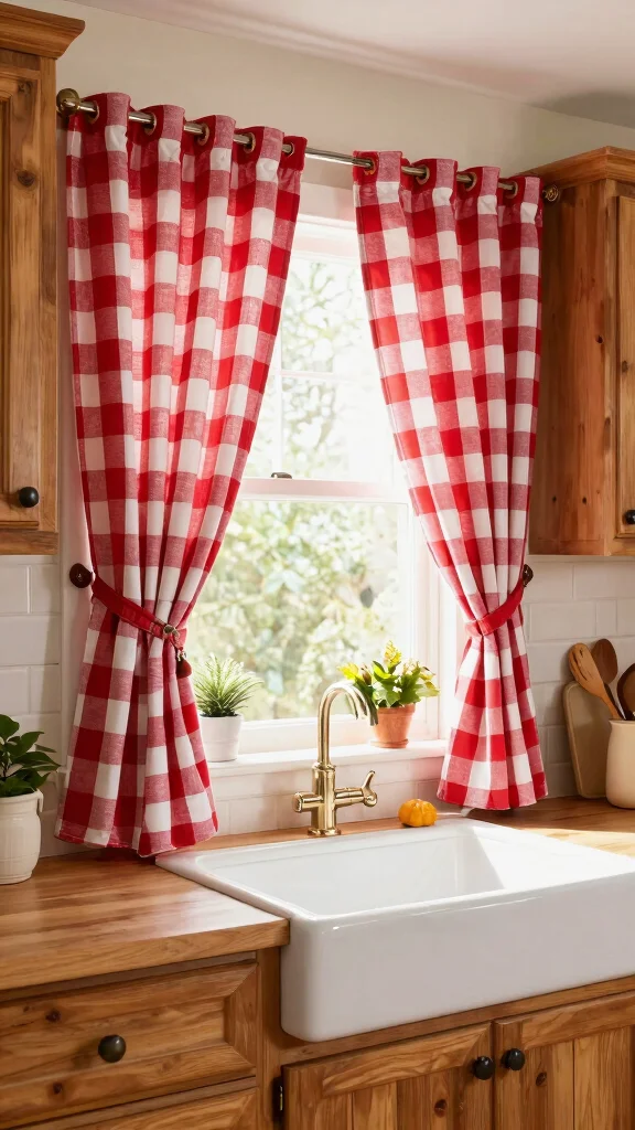Pair these curtains with wooden rods and matching kitchen accessories for a cohesive country aesthetic. Layering with sheer curtains can soften the edges and allow some natural light to filter through, creating a cozy ambiance.