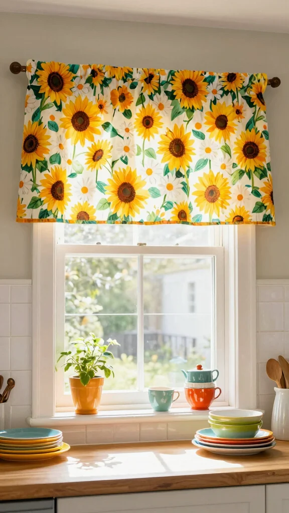 Fun fact: Whimsical floral valances made from eco-friendly cotton can boost perceived light by up to 20% in a kitchen. Hang them high above the window to add the illusion of taller ceilings and make the space feel instantly brighter.