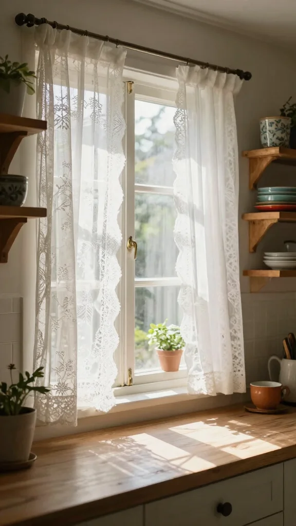 – Balancing the delicacy of lace with sturdier kitchen elements.