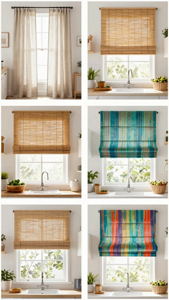 Roman shades are a classic window treatment that can be styled in an array of eco-friendly fabrics, including organic cotton or recycled materials. Brightly colored roman shades can inject cheerfulness into your kitchen, making it feel lively and vibrant. Choosing bold patterns or colors that complement your decor creates a stunning focal point, enhancing the overall aesthetic.