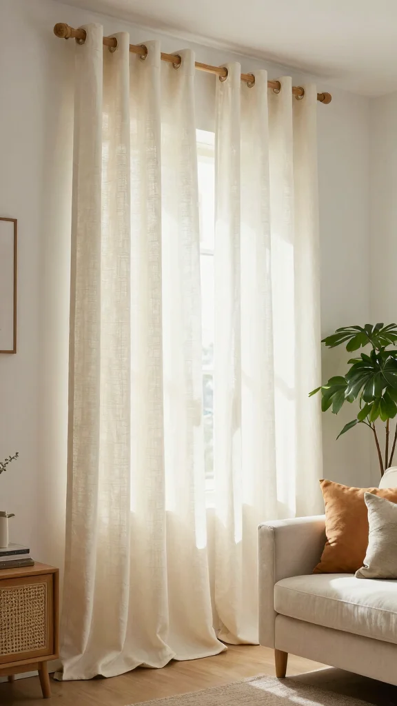If you’re looking to introduce a soft, natural touch to your living room, organic cotton curtains are an excellent choice. These curtains not only filter light beautifully but also create a warm and inviting atmosphere. With their breathable fabric, they help maintain a comfortable temperature, making them perfect for any season. Imagine pairing them with a light wood rod for a rustic feel or a sleek metal rod for a contemporary twist.