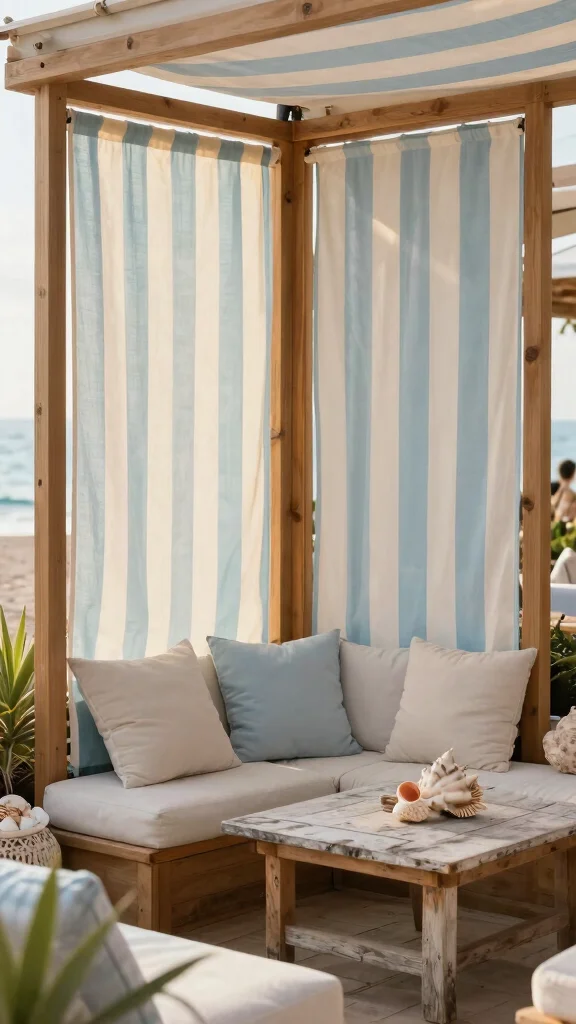 Capture a relaxed coastal vibe with outdoor screens that offer privacy while enhancing your outdoor aesthetics. Made from materials like wood or bamboo, these screens can feature nautical patterns or beachy colors, infusing your space with tranquility and charm. They create a peaceful atmosphere perfect for intimate gatherings or moments of solitude.