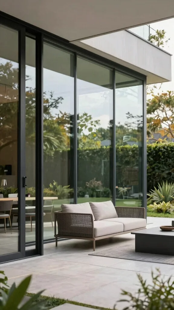 Minimalist glass panels create an open and airy feel, making your outdoor space feel larger while providing comfort and elegance.