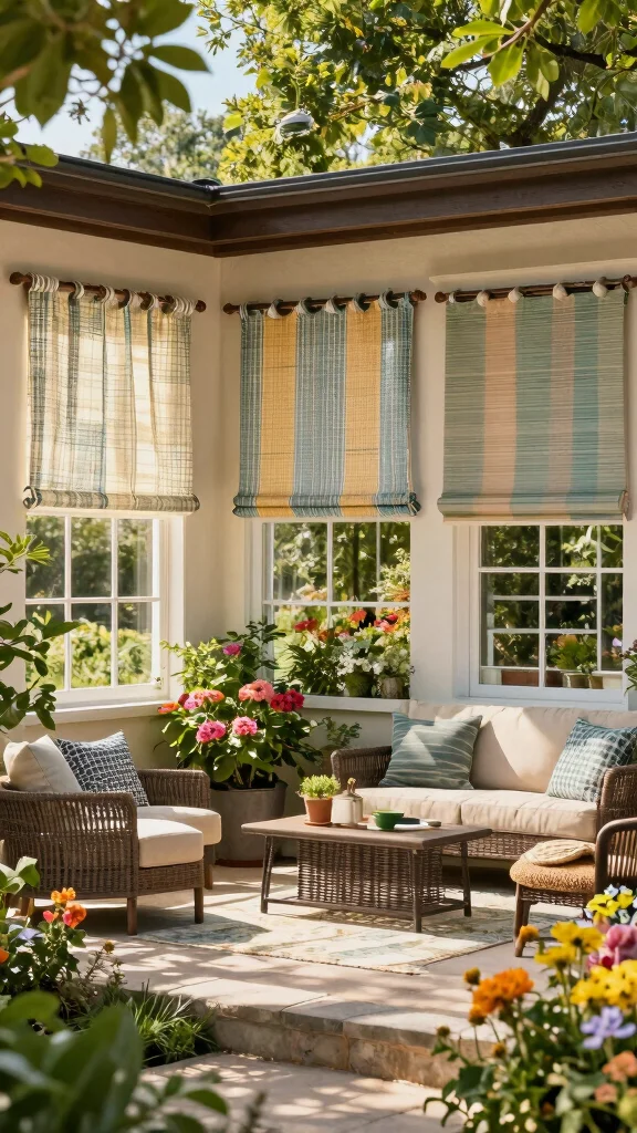 Tips: allow enough clearance for wind to prevent flapping, choose rustproof hardware and weatherproof fabrics, and consider motorized options for effortless adjustments. This approach aligns with window treatment design principles and creates versatile, stylish coverage.