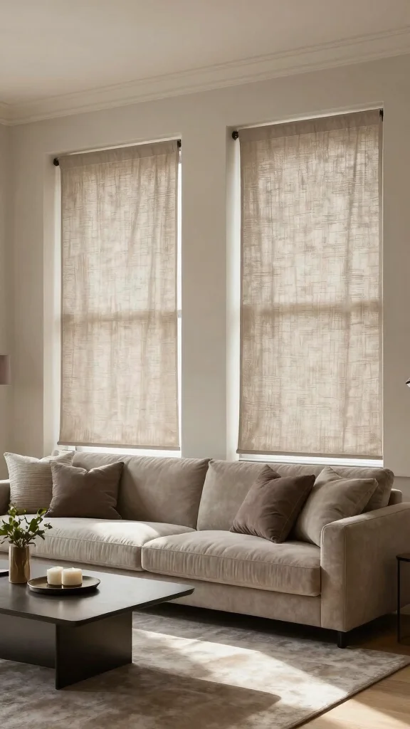 Vertical blinds serve as a chic solution for larger recessed windows or sliding glass doors. They not only provide practical light control but also add a sense of height and drama to your rooms while maintaining a minimalist vibe. Opt for lightweight materials in soft hues that integrate effortlessly into your décor. Their ease of use allows for flexible light adjustment, making them a smart choice for privacy as well.