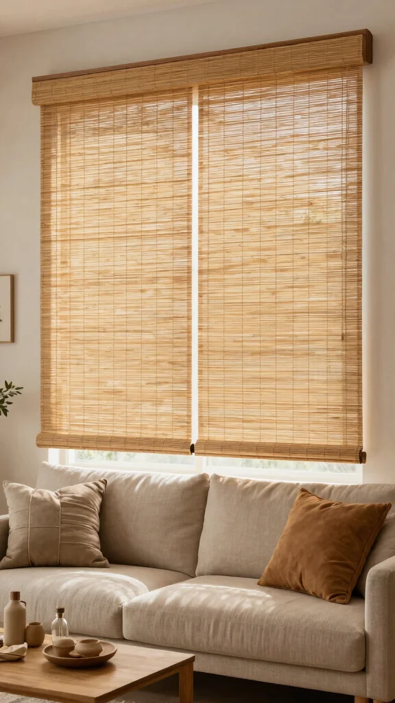 Bamboo, woven wood, or recycled-aluminum blinds provide natural texture and lower environmental impact than certain synthetics.