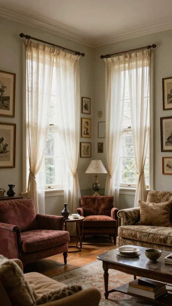 Keep the look balanced by layering: airy sheer underlayers, vintage-inspired rustic curtains, and clean window frames. Choose a neutral base and sprinkle vintage touches like a lace trim or a burlap ribbon. For farmhouse window decor, mix textures smartly and use one focal vintage piece while keeping the rest simple to avoid clutter. This approach works great for cozy window ideas that feel timeless.