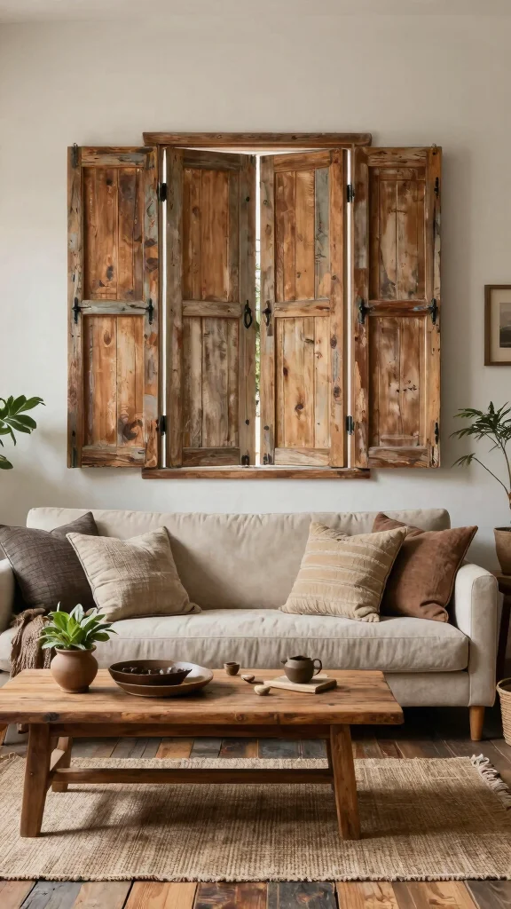 Elevate your rustic decor with reclaimed wood shutters that add a robust, earthy feel to any space.
