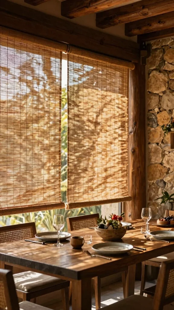 Bring a touch of nature indoors with woven bamboo shades, a fantastic option for rustic window treatments.
