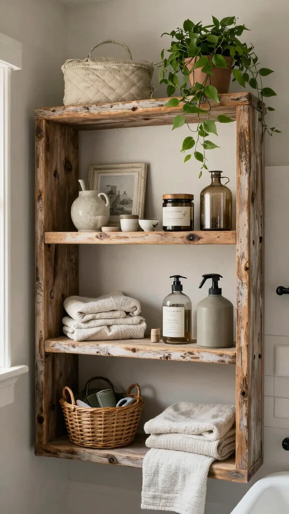 If farmhouse style speaks to your heart, incorporating rustic wooden shelves is a must. These shelves often feature a distressed finish that beautifully complements the overall aesthetic of a cozy bathroom. Use them to display vintage accessories or plants that bring a touch of nature indoors.